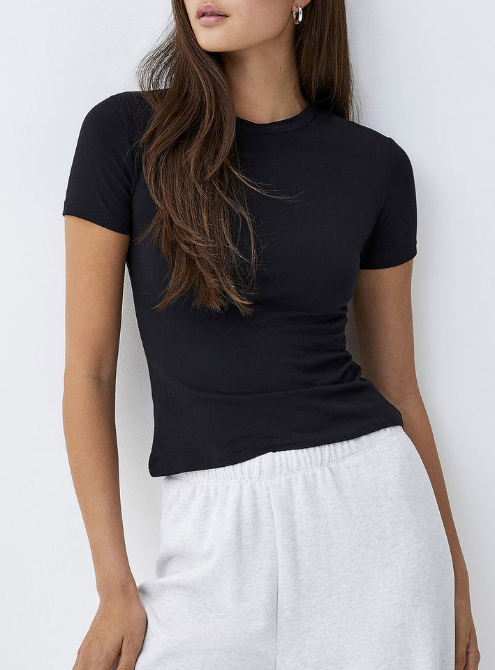 Women's Black Cap Sleeve Baby Tee 100% Cotton Plain Short Length Fitted Custom Logo Women's Casual T-shirts Wholesale Y2k Tops