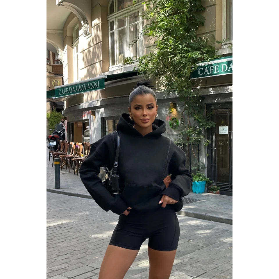 Women's Black Hooded Sweatshirt with Zip Detail Long Lined Hoodies Fabric Type Material Printed Style