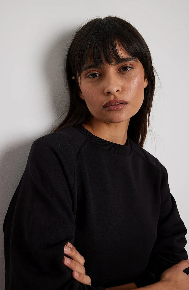 Sweat-shirt oversize à manches raglan noir pour femme, 100% coton, col rond, streetwear, mode, logo personnalisé, sweat-shirt pour femme