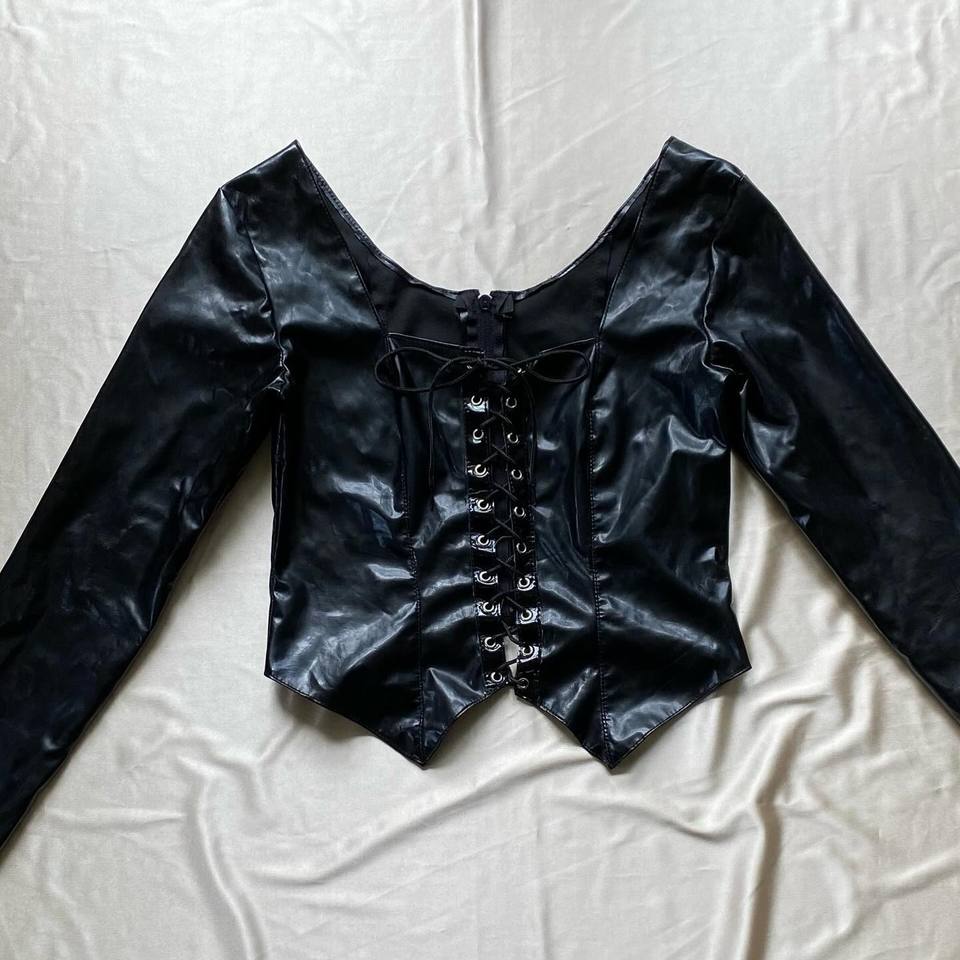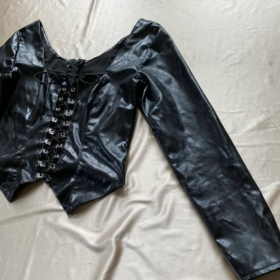 Women's Black Shinny Pu Leather Bustier Top for Party Club Custom Made Design with full sleeves Wholesale Available