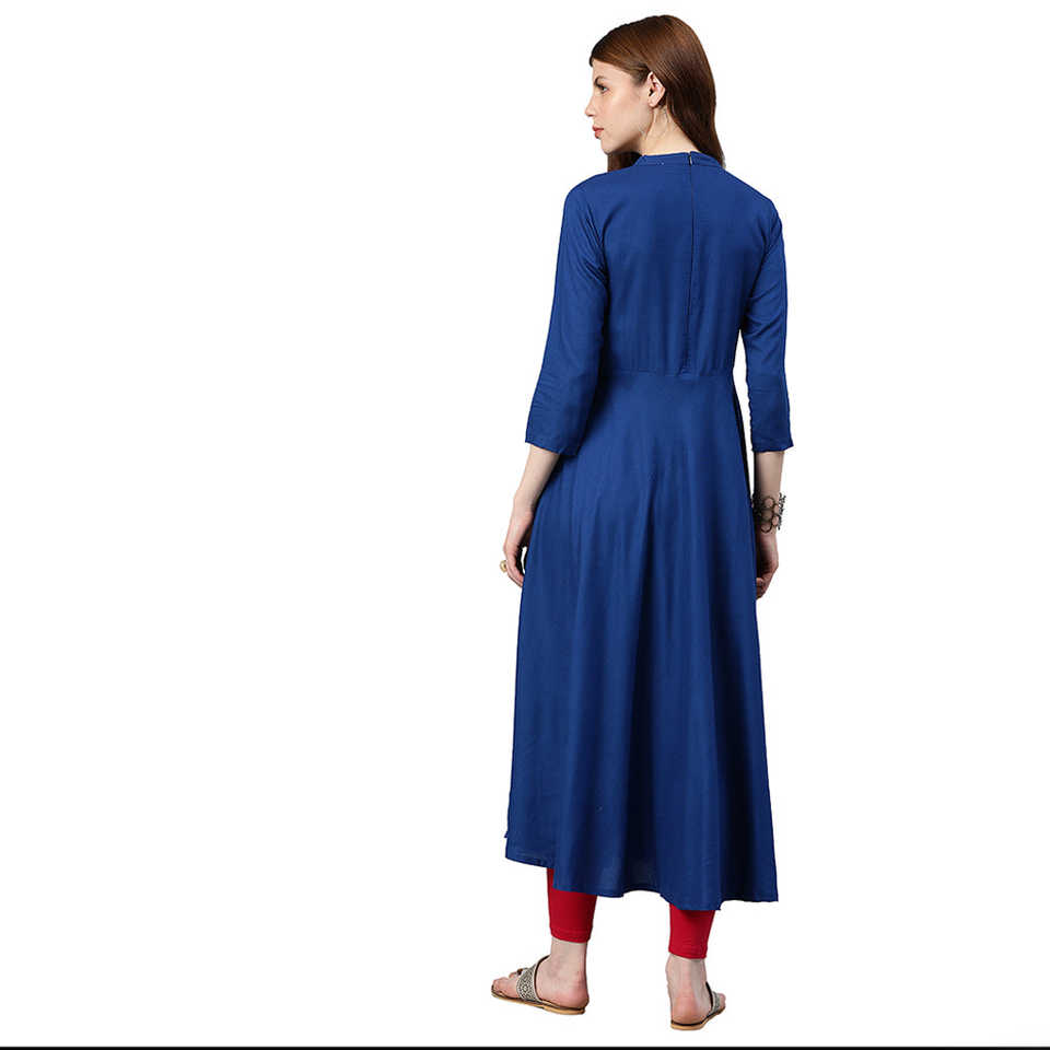 Chemisier et chemise confortables Anarkali Kurta brodés de rayonne bleue élégante pour femmes