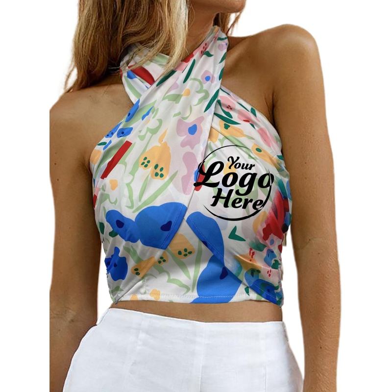 Women's Breathable Knitted Elegant Clothing Sexy CrissCross Halter Sleeveless Wrap Front Backless Cami Crop Top Clubbing