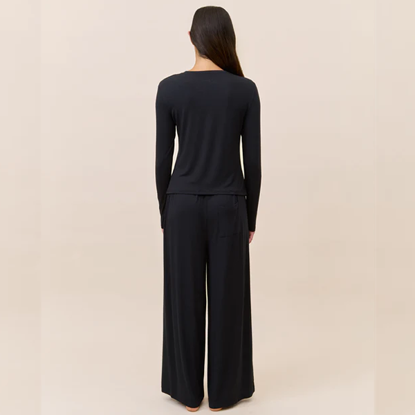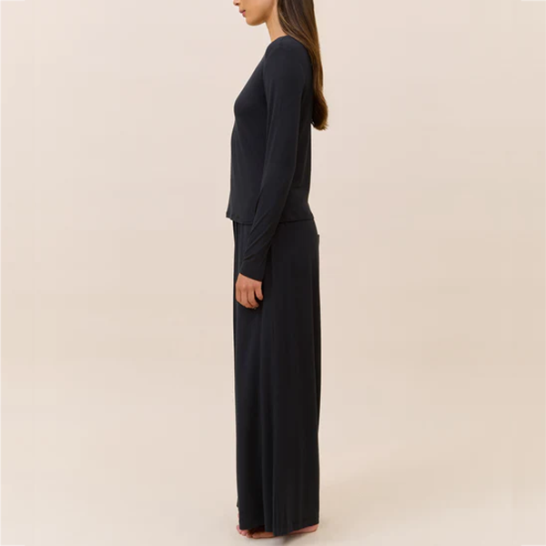 Ensemble de pyjama respirant en modal pour femme, haut à manches longues et col rond, pantalon large, vêtements de détente, pyjama à col rond