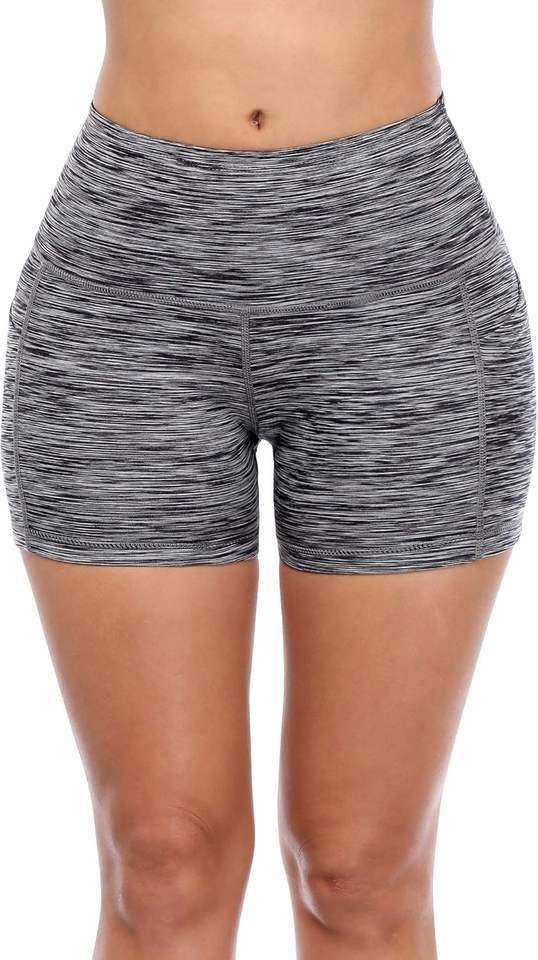 Short d'entraînement de gymnastique respirant à séchage rapide pour femmes avec poches évacuation de l'humidité et décoration de boutons