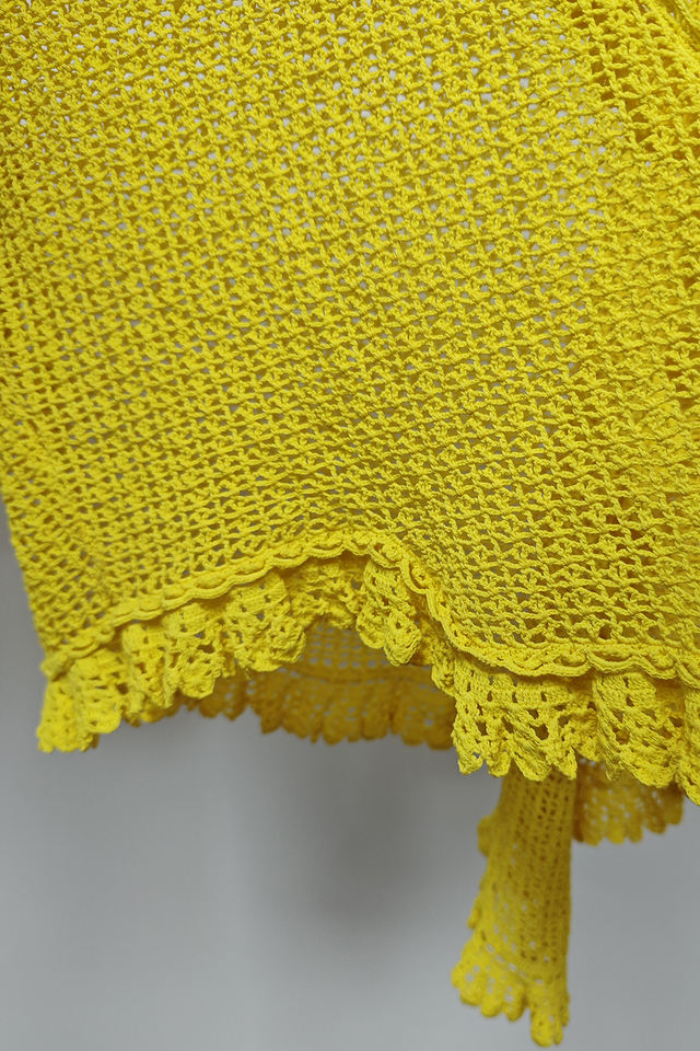 Women's Bright Yellow Knitted Casual Sweater with Hollow-out Detail and Front Logo