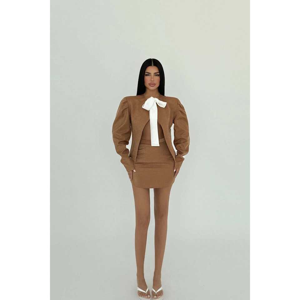 Ensemble de costume marron pour femme, ensemble jupe marron élégant