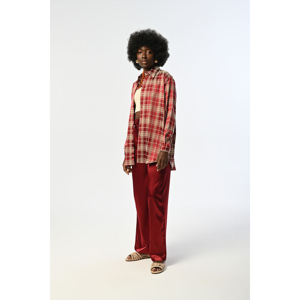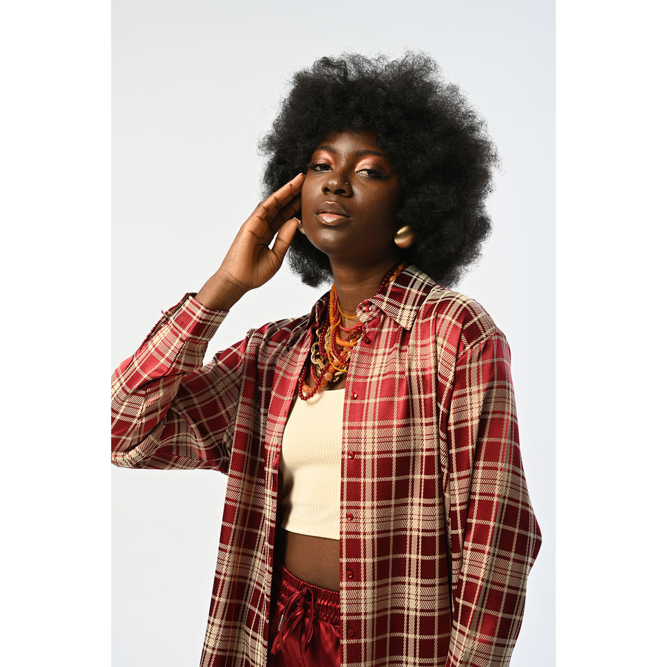 Women's Burgundy Plaid Oversize Blouse Comfortable and Stylish Plaid Shirt Design
