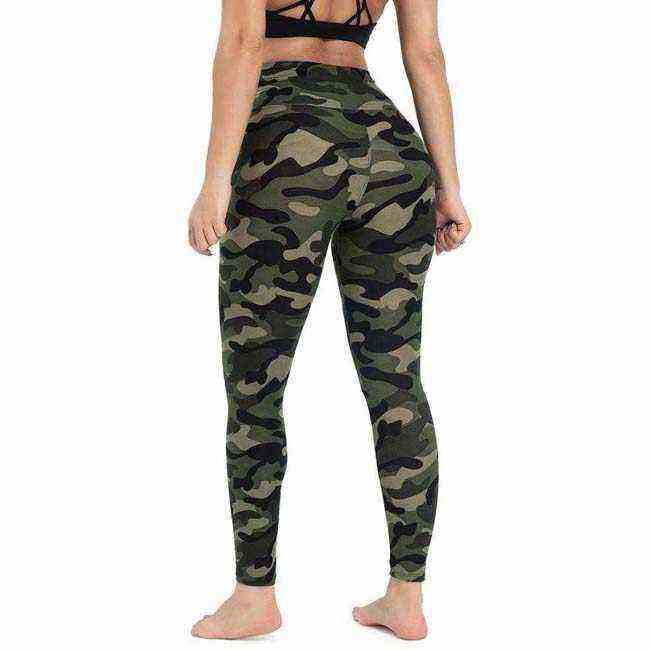 Leggings d'entraînement de compression à imprimé camouflage pour femmes pantalons de yoga extensibles avec poches collants à motifs solides