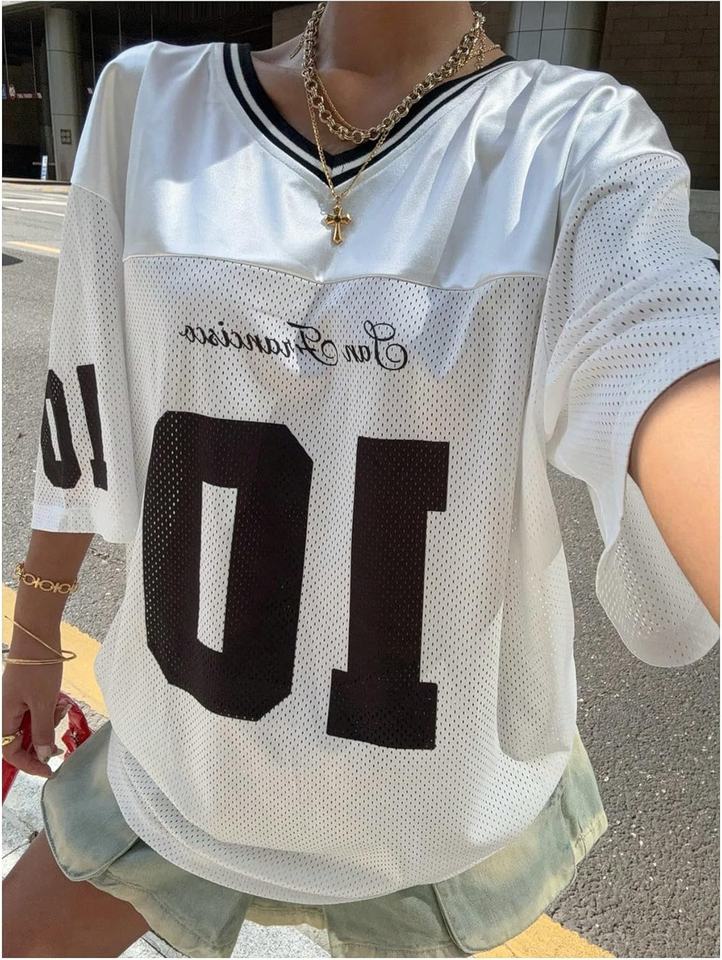 Women's Camo Print V-Neck Basketball Jersey Tee Shirts Loose Fit Anti-Pilling Polyester Casual Summer Sports Style Y2K Style