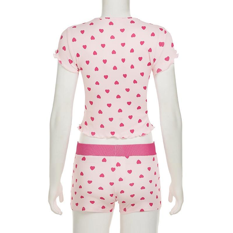 Women's Casual 2-Piece Set Spring Style Digital Printing O-Neck Top Above-Knee Spandex/Polyester Shorts Pink Knitted Fabric