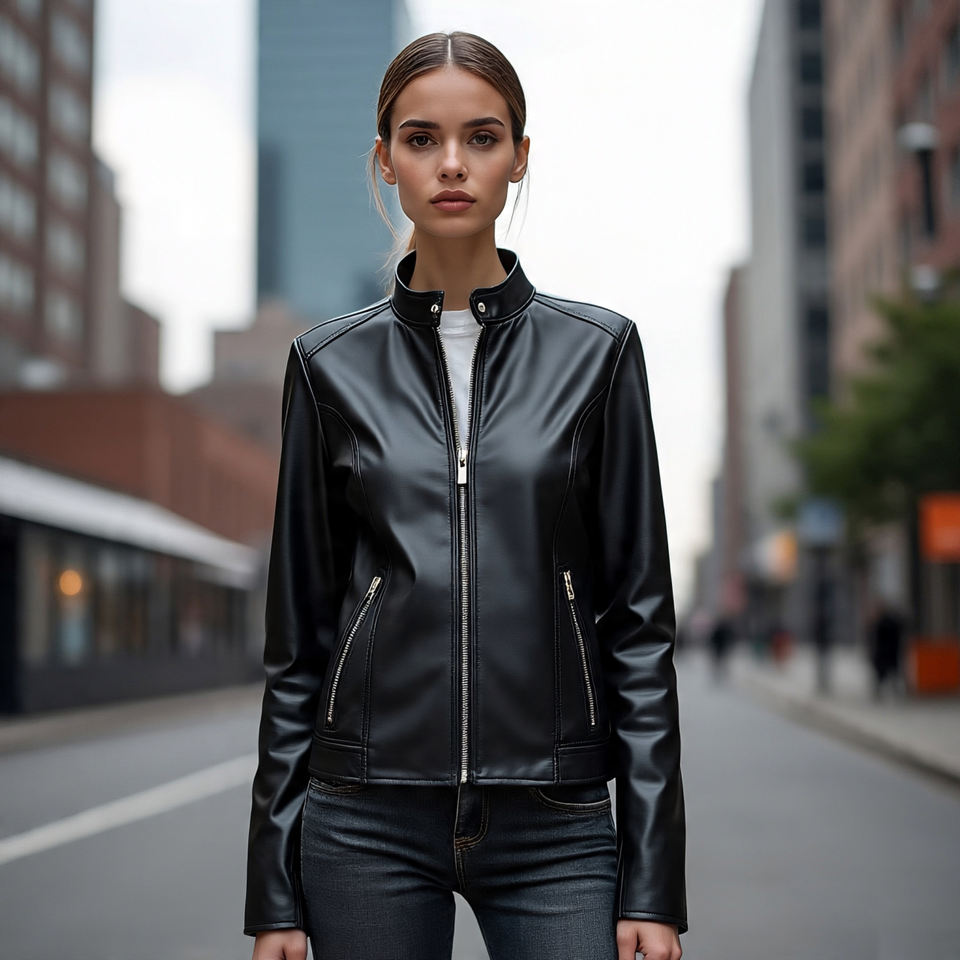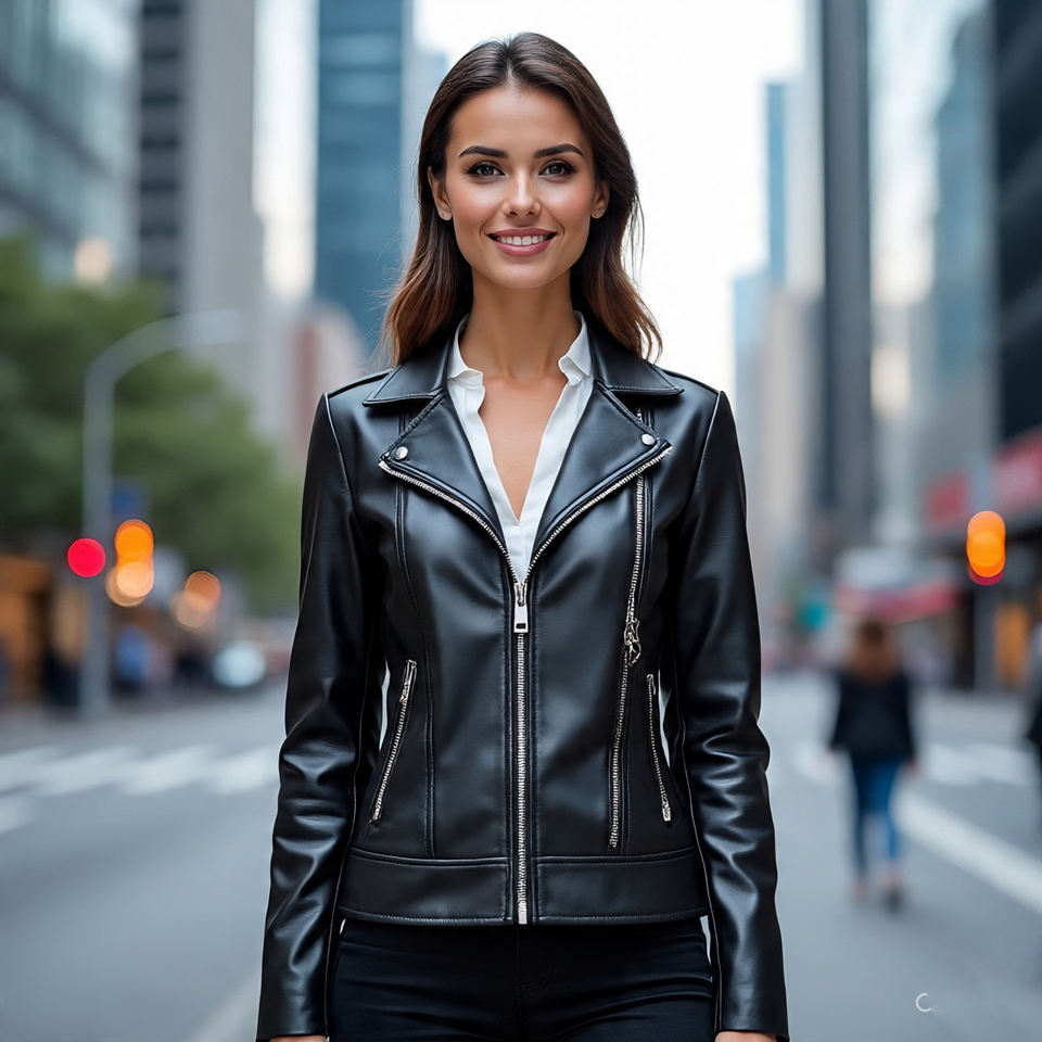 Keywords:Women Cow Skin Zipper Leather Jackets