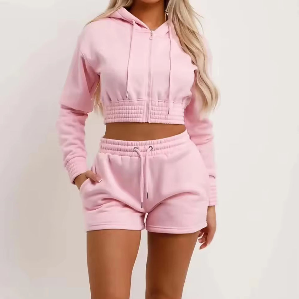 Product name:Women Crop Hoodies Short Set