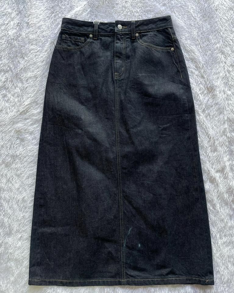 Women's Casual High Waist Midi Denim Skirts with Button-Breathable OEM Factory Wholesale Custom Embroidery & Printing Logo