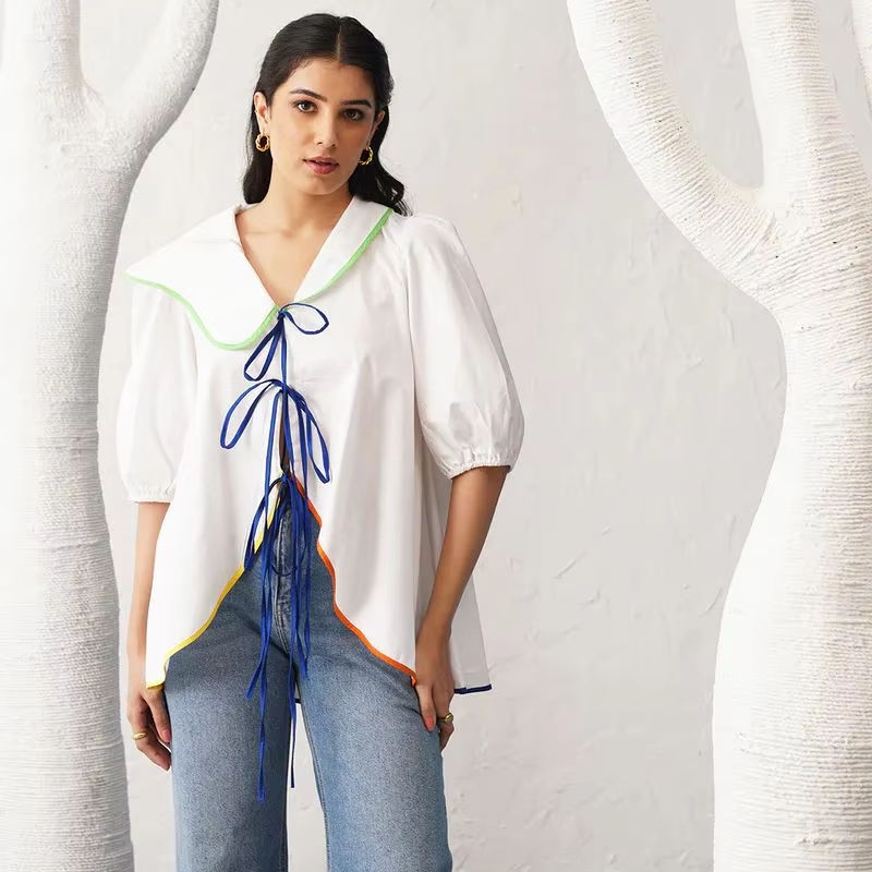 Women's Casual Loose Blouse Tops Polyester Solid Long Sleeve Thin Woven Outwear Blouses and Shirts