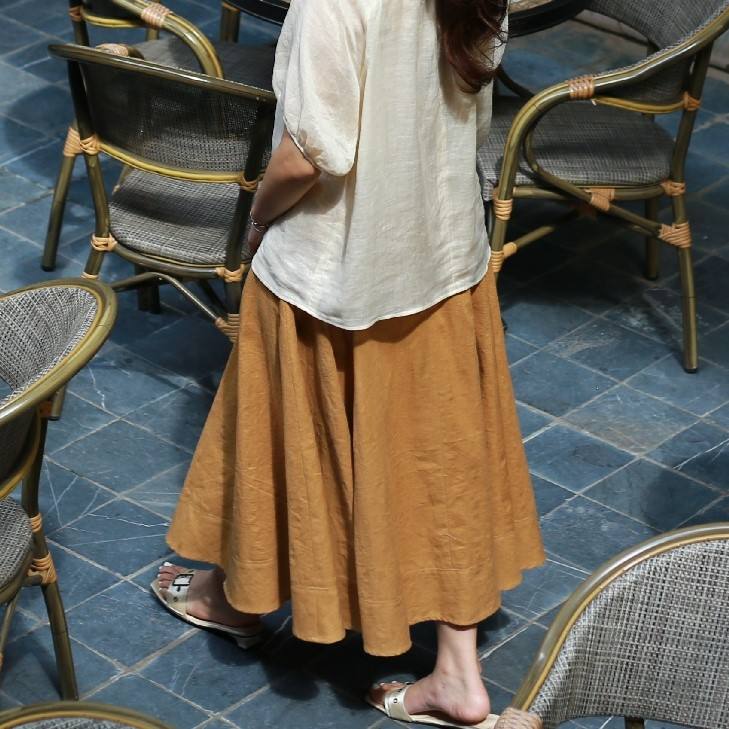 Women's Casual Rayon Satin A-Line Midi Skirt High-Waist Pleated Pocket Liner Decor High Visibility Breathable Natural Printed