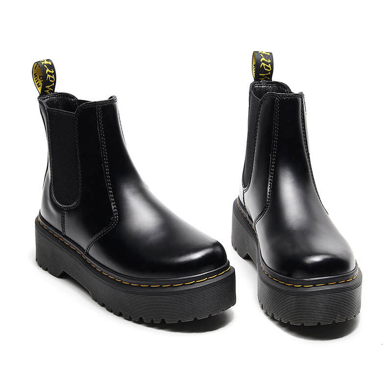 Women's Chelsea Boots Thick-Soled Platform Boots Short Boots Slip-On Leather Shoes Autumn Round Toe