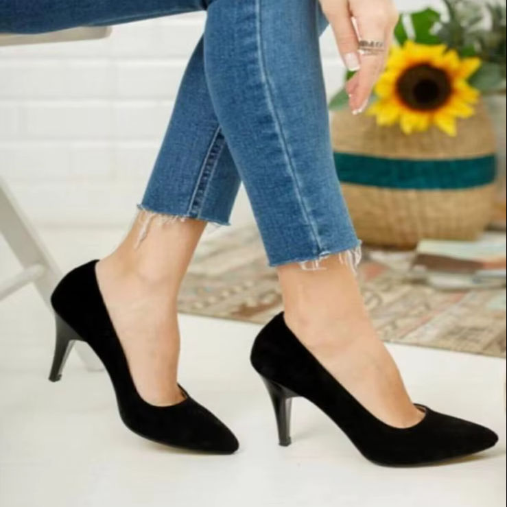 Women's Classic BLACK SUEDE Stiletto Heel Shoes Pointed Toe Rhinestone Decoration 36-40 36-40 you made in Turkiye