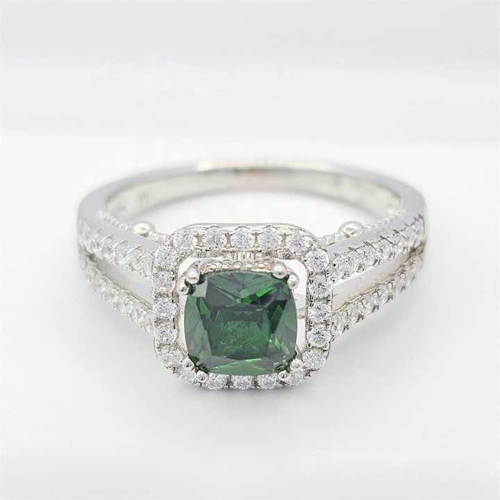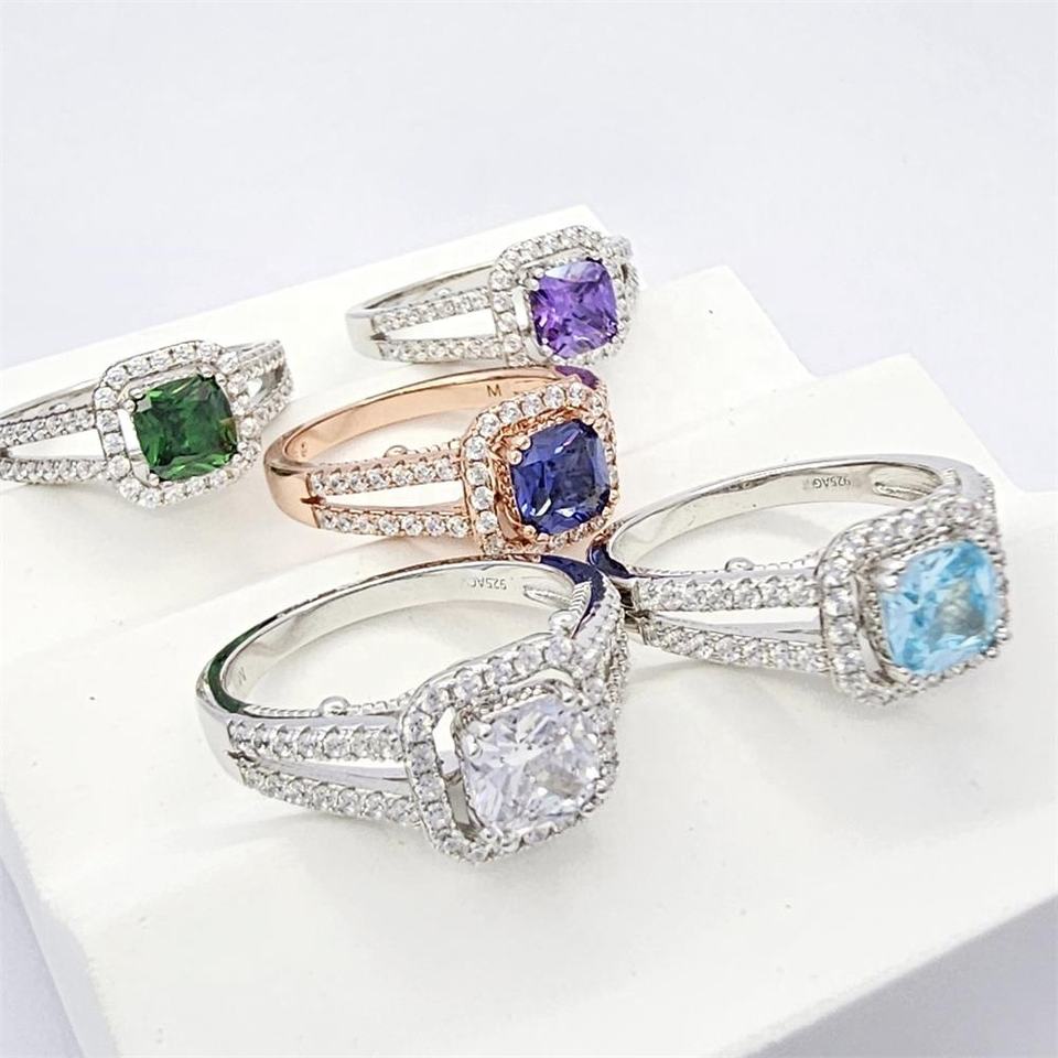 Women's Classic Blue Zircon 925 Silver Rhodium Plated Cocktail Ring Square Shape Wedding Engagement Jewelry Set