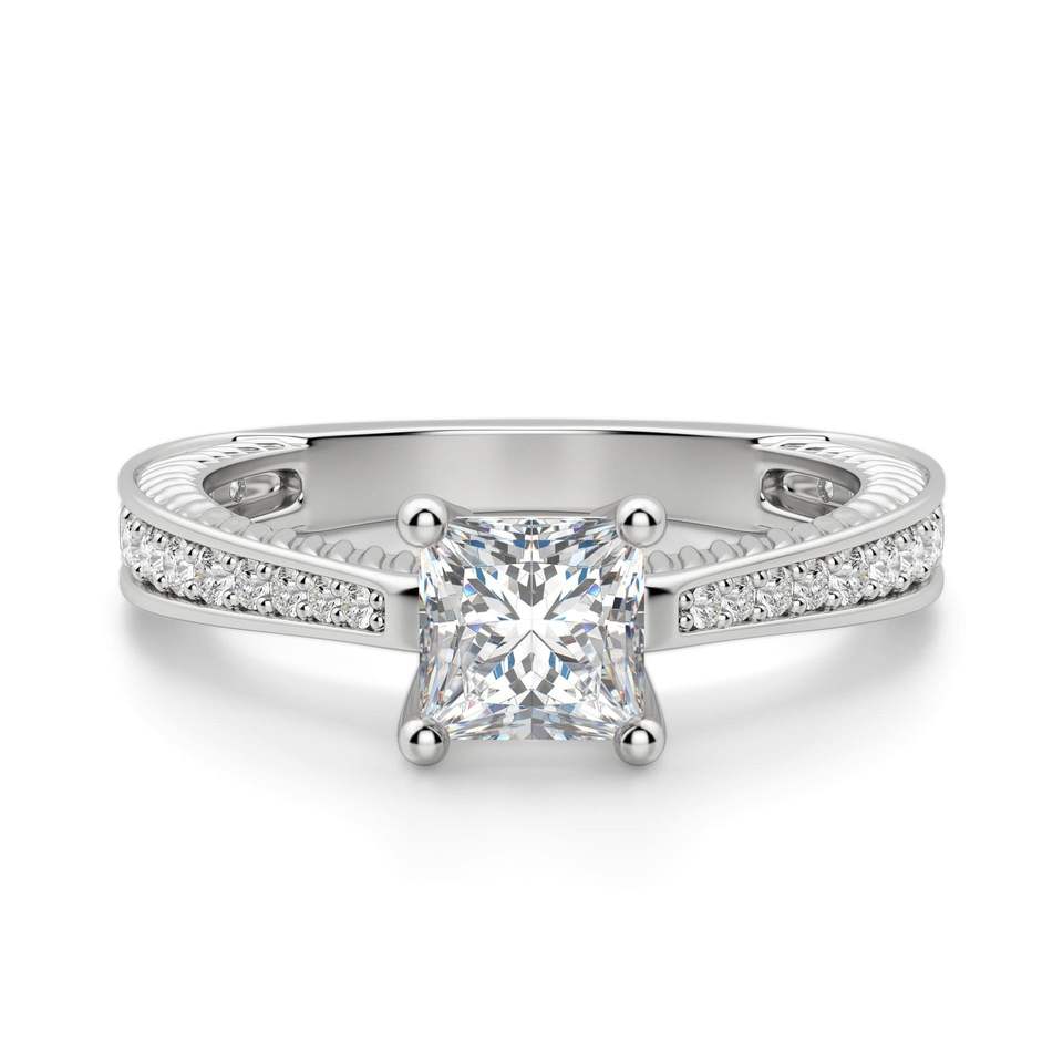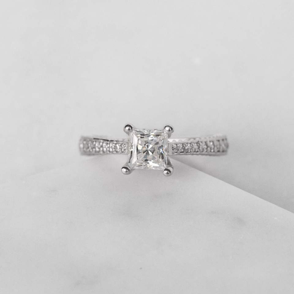 Women's Classic Princess Cut Moissanite & Lab Grown Diamond Pave Set Anniversary Birthday Ring Gold Plating for Bridal Occasions