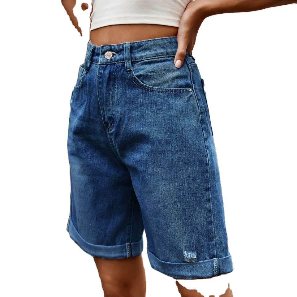 Vêtements pour femmes Shorts en jean cinq pouces déchirés retroussés Pantalons décontractés Short en jean court