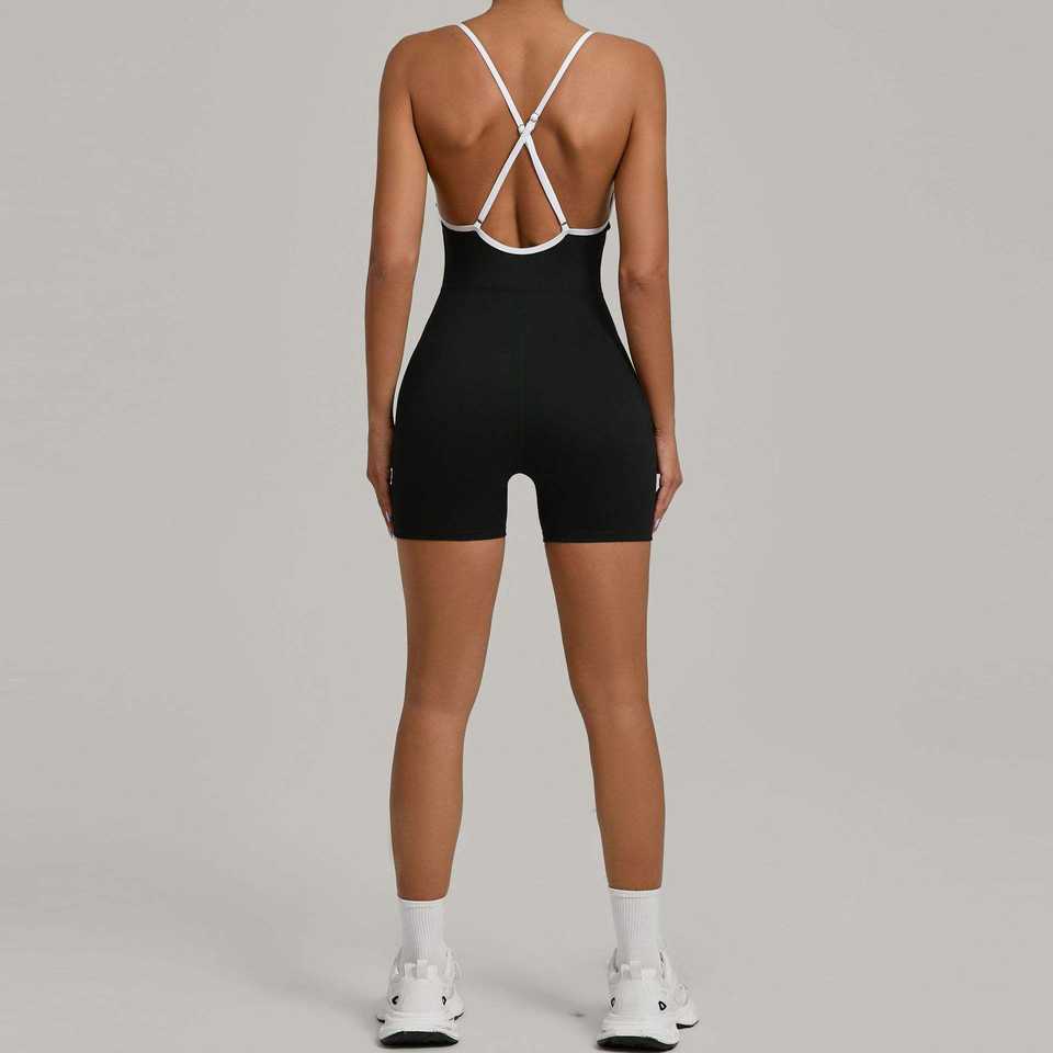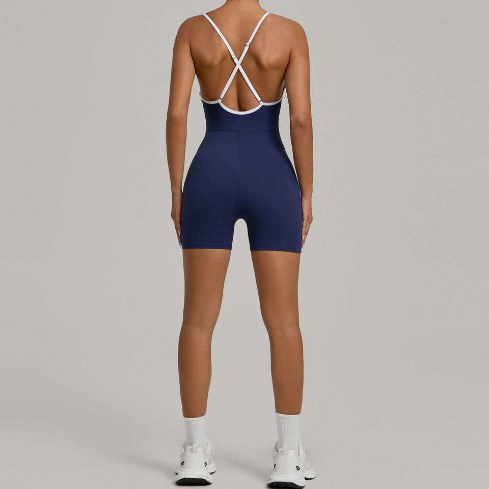 Combinaison de yoga colorblock à dos croisé pour femme - Combinaison de sport gainante, anti-transpiration et respirante