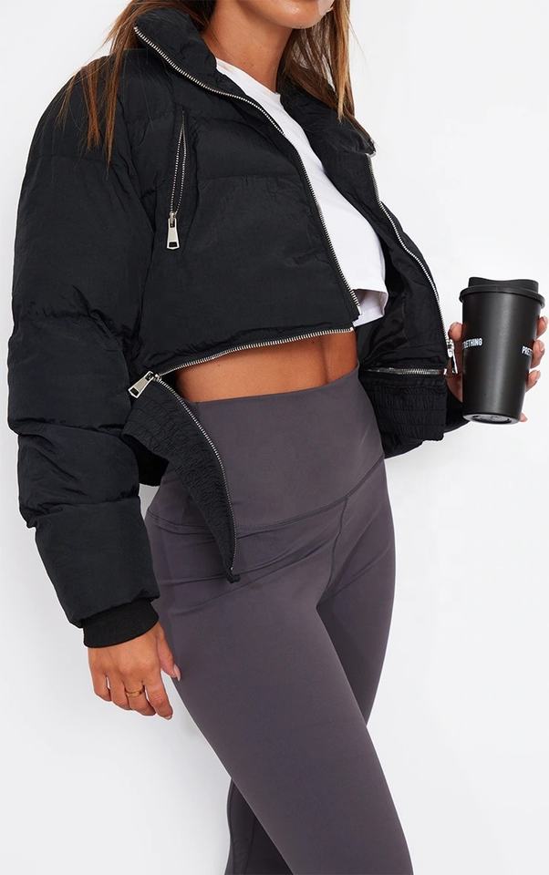 Femmes confortable respirant doudoune haut court hiver bulle manteaux matelassé court bulle veste tricoté traité