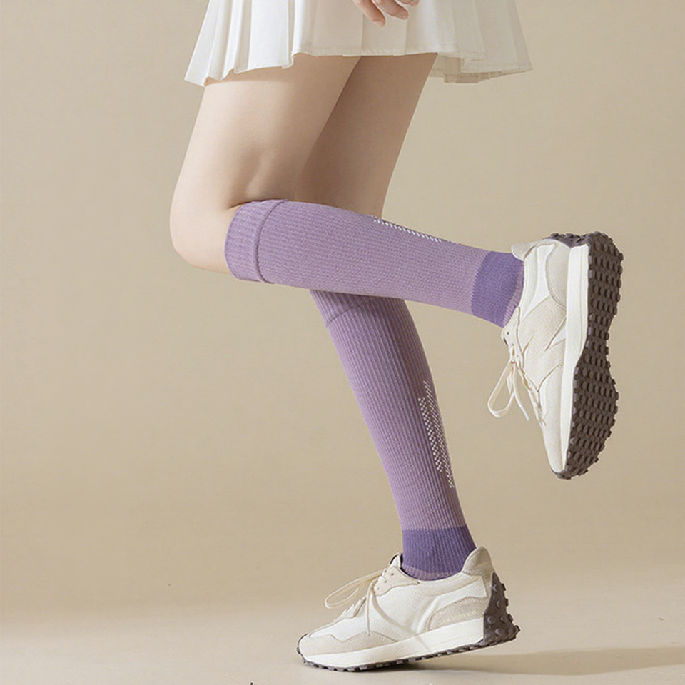Chaussettes de compression pour femmes, couleur unie violette, respirantes, pour le cyclisme, pour les jeunes, automne-hiver, chaussettes longues