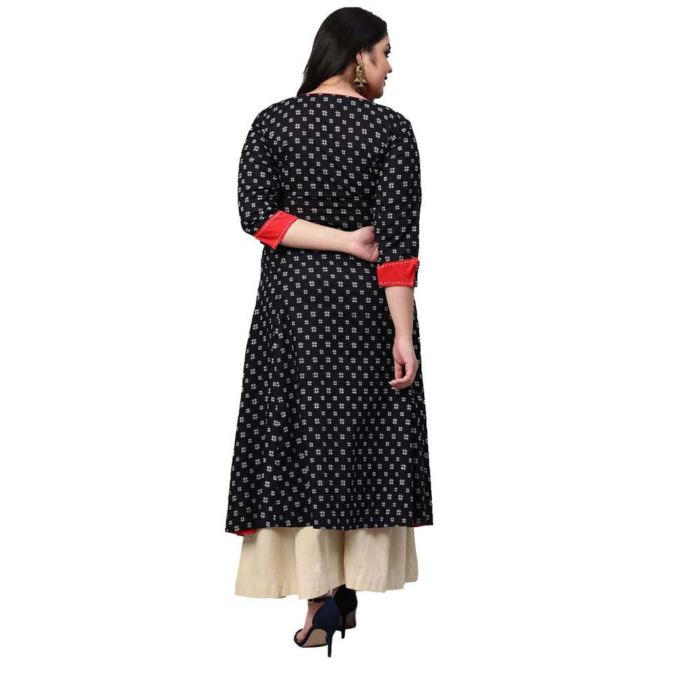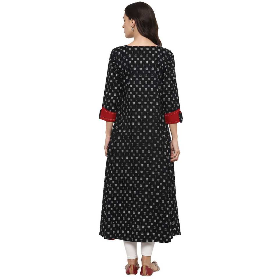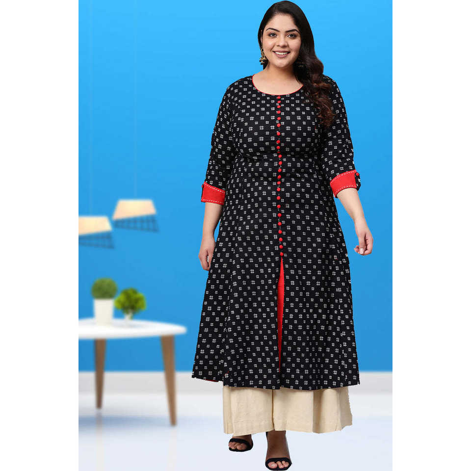 Round neck,Button closure design,Three-fourth sleevesKurta design