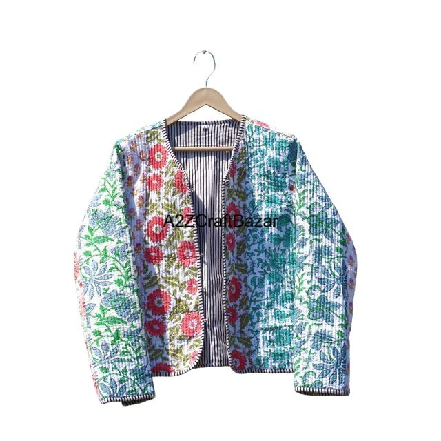 Veste matelassée réversible en coton doux pour femmes, patchwork, décontractée et formelle, bouton décoratif, blanc, tailles S/M/L/XL/2XL/3XL