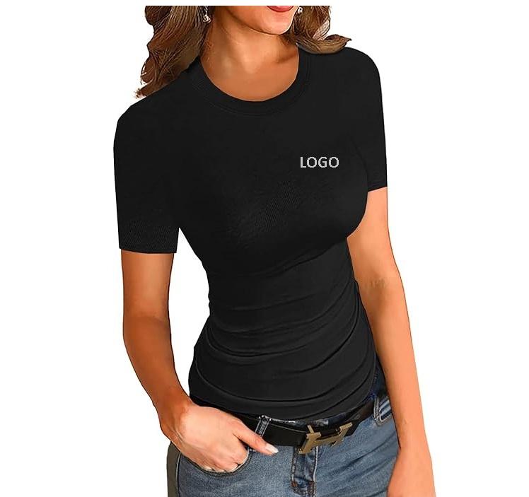 T-shirt côtelé à manches courtes et col rond pour femmes Slim Fit Tops T-shirt basique solide disponible