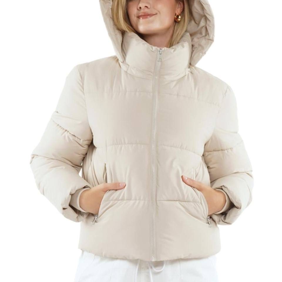 Veste courte matelassée pour femme, respirante et imperméable, avec capuche amovible et poches zippées pour l'hiver