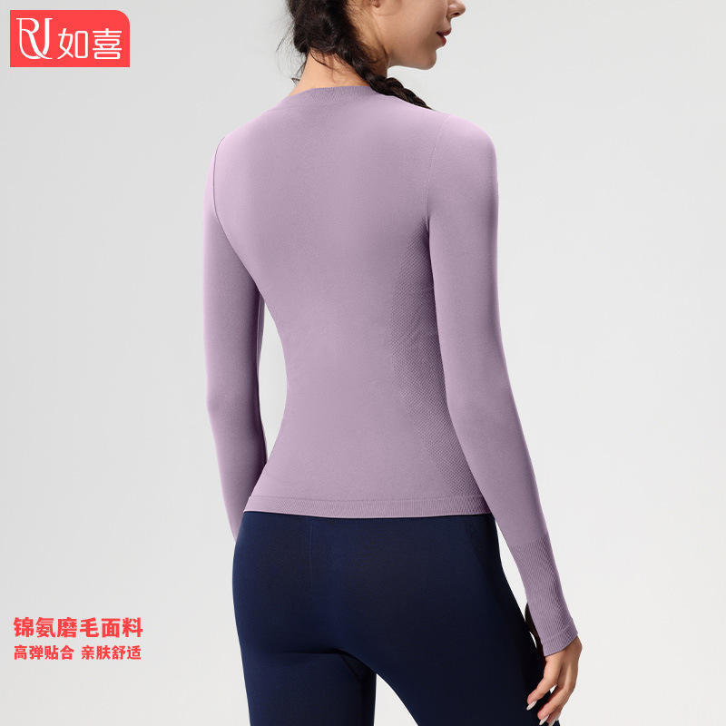 T-shirt en nylon à séchage rapide transfrontalier pour femmes, couleur unie, à manches longues, entraînement Pilates en plein air, vêtements de fitness, haut de yoga