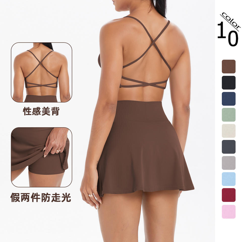 Women's Cross-Border Sports Fitness Yoga Short Skirt New Cloud-Feeling Slingback Sports Bra Casual Running Suit
