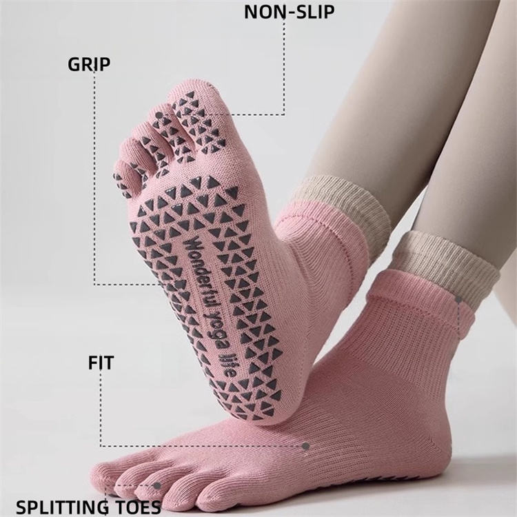 Women's Custom 5 Finger Grip Socks Yoga Pilates Youth Size Cotton Animal Pattern Knitted Technics ODM Spring No Show Bottom