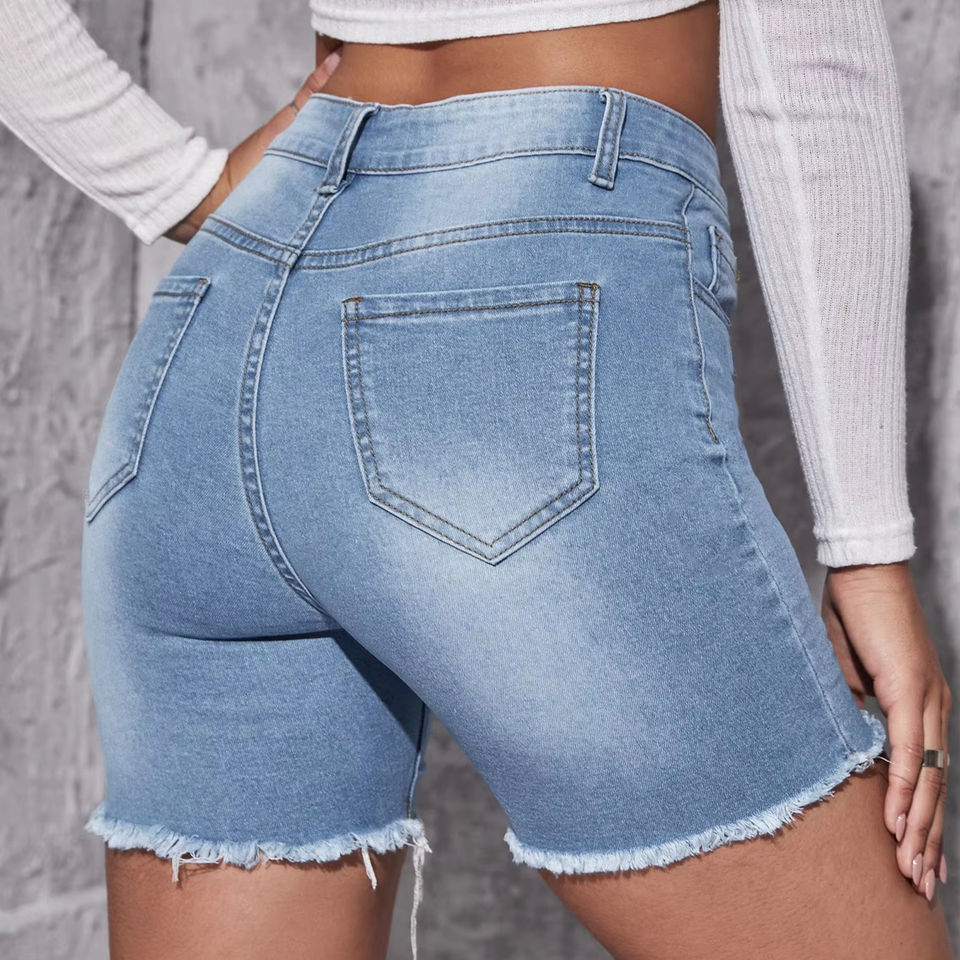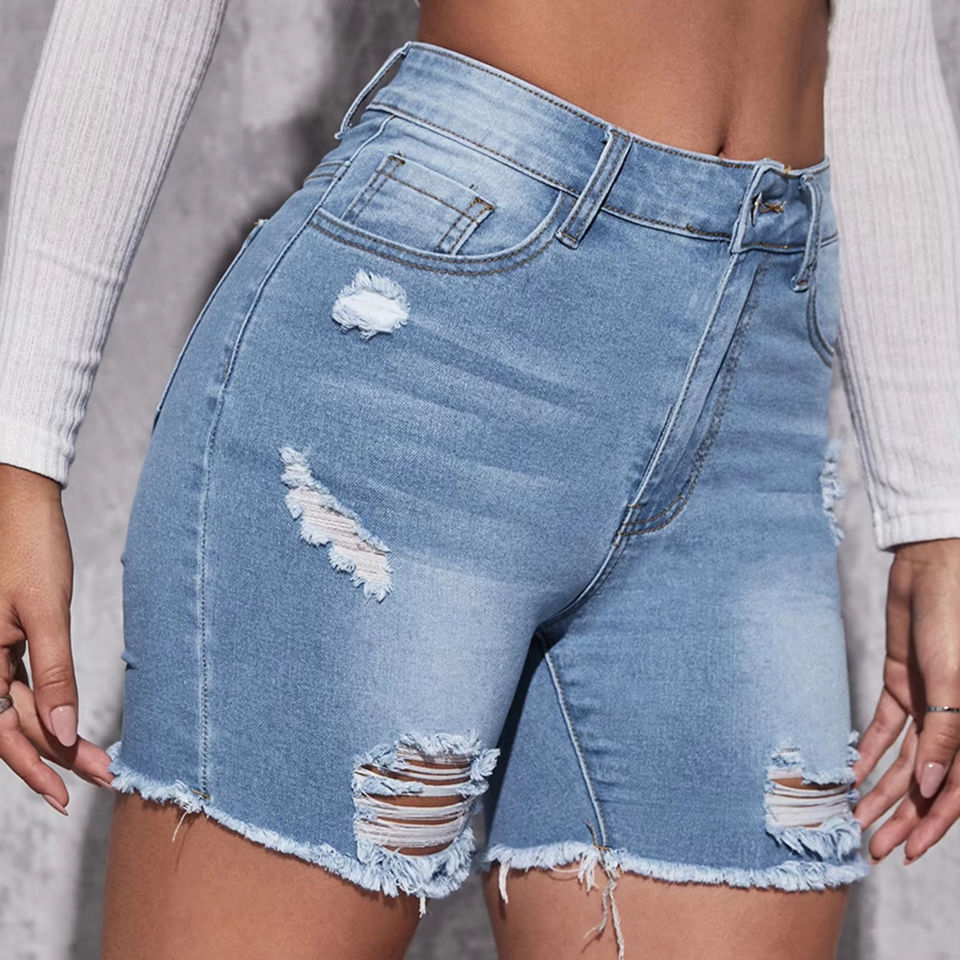 Women's Custom Blue Denim Bermuda Shorts Ripped Jeans Wholesale Trendy Casual Jean Shorts for Women Summer Fashion Shorts