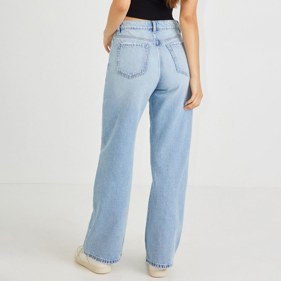 Women's Custom Branded Breathable Mid Baggy Cargo Pant Six-Pocket Utility Design Cotton Straight Cut Jeans Wholesale Fashion