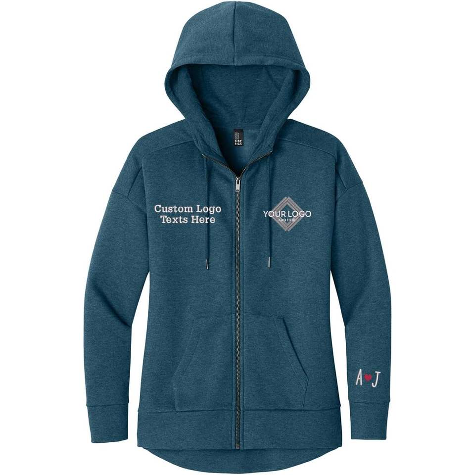 Sweat à capuche personnalisé pour femme DT1104 avec logo brodé, poids parfait, polaire avec fermeture éclair, design de point d'encre