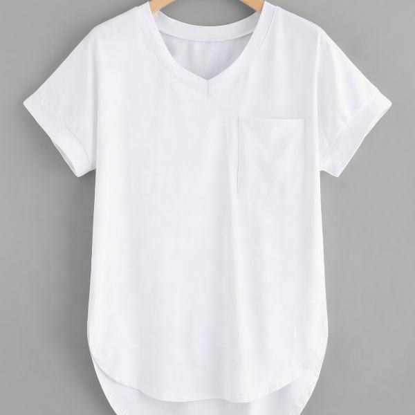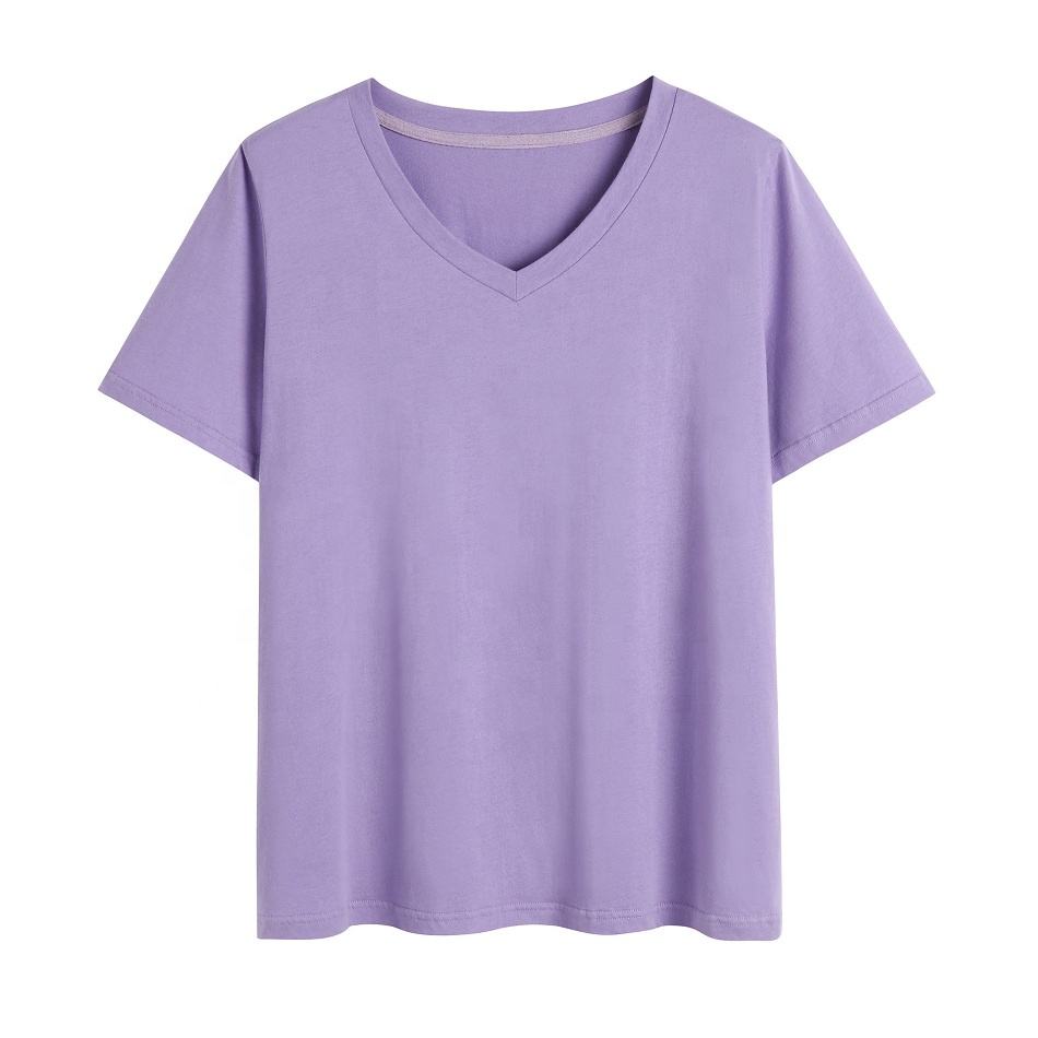 T-shirt en coton biologique pour femmes, col en V, couleur unie, taille plus, coupe ample, imprimé numérique, vente en gros d'usine, en vrac