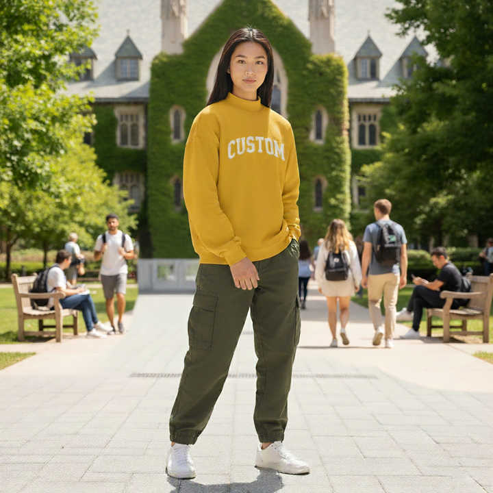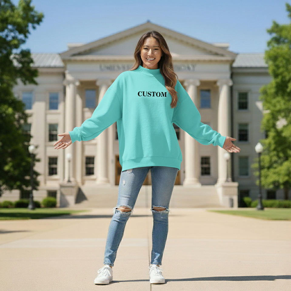 Sweat-shirt en molleton de coton tricoté d'hiver pour femme avec logo brodé personnalisé sur le devant, col montant, bouton latéral, fraternité Delphic