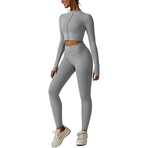 Ensemble de 2 pièces pour femmes, veste de yoga respirante à séchage rapide personnalisée, vêtements de sport, tenue longue, mode, fitness, couleur unie