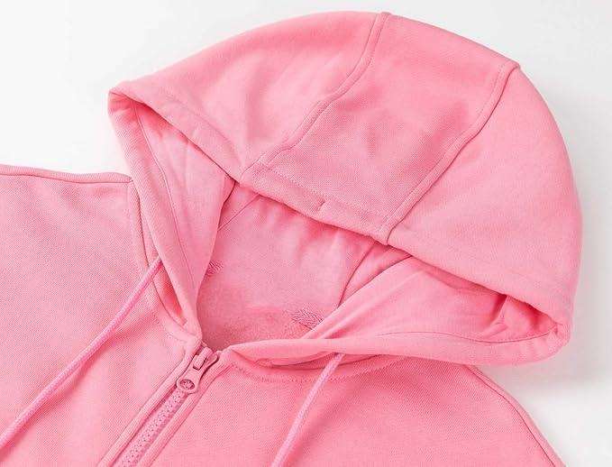 Women's Custom Hooded Sweatshirt Casual Soft Brushed Fleece Pink Hoody Shoulder Full Zip up Hoodies solid