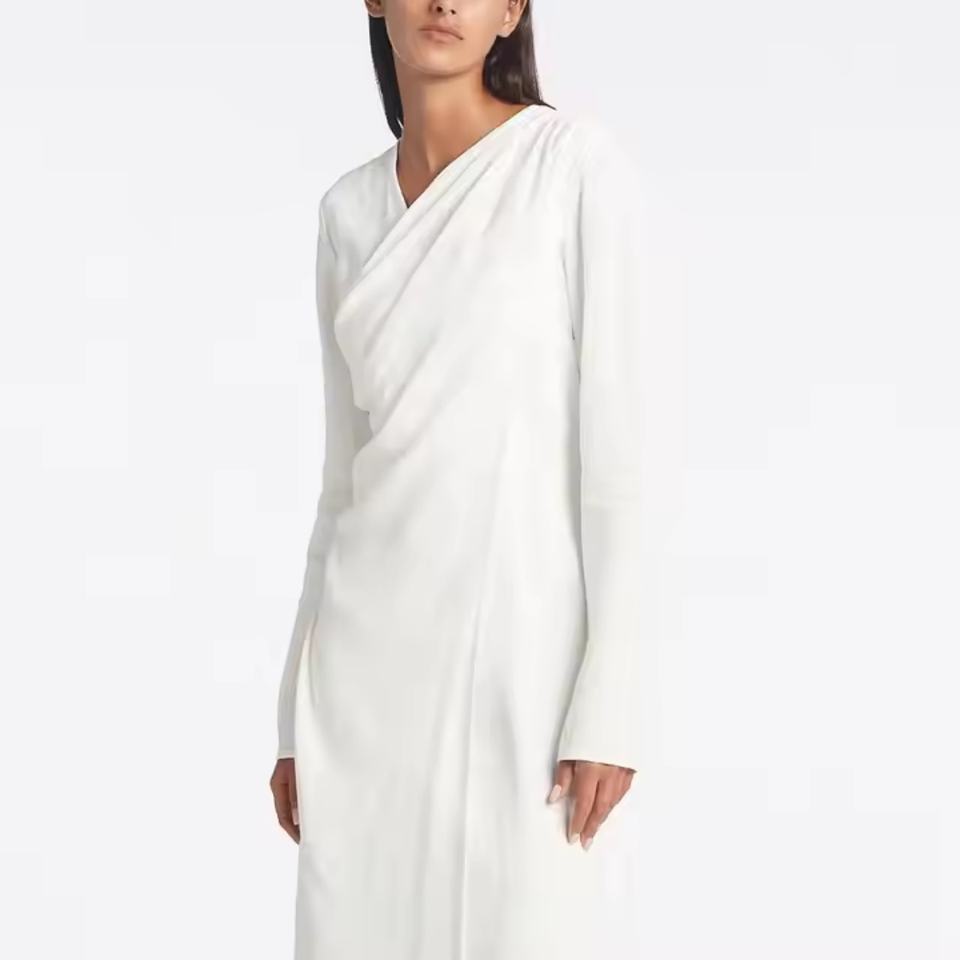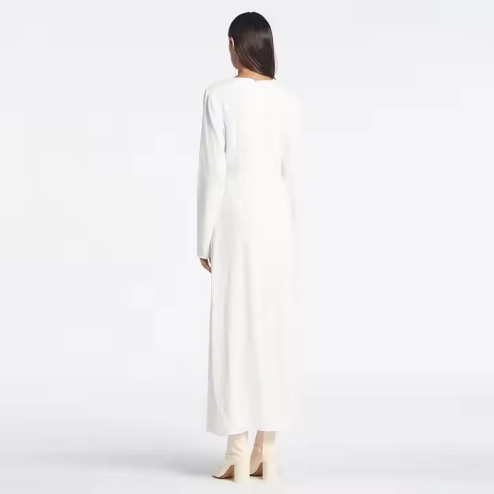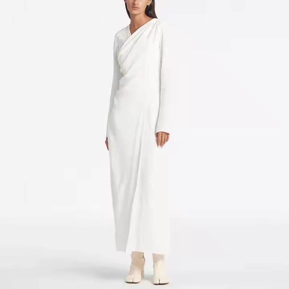 Robe longue en lin personnalisée pour femme, manches longues, col en V, décontractée, coupe ample, fente latérale, taille XS, tissée unie pour le printemps, l'été et l'automne