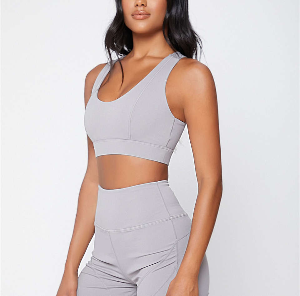 Ensemble de sport 2 pièces personnalisé pour femme avec logo – Soutien-gorge de sport sans couture à dos haut et haut court – Motif uni – Tenue décontractée et sexy pour l'entraînement – 100 % coton