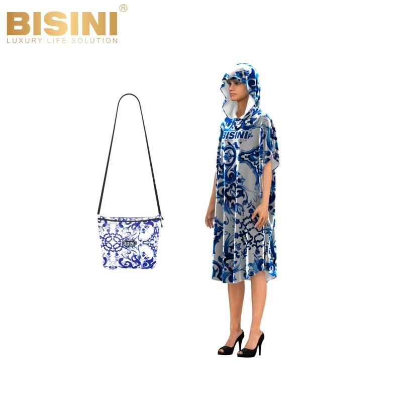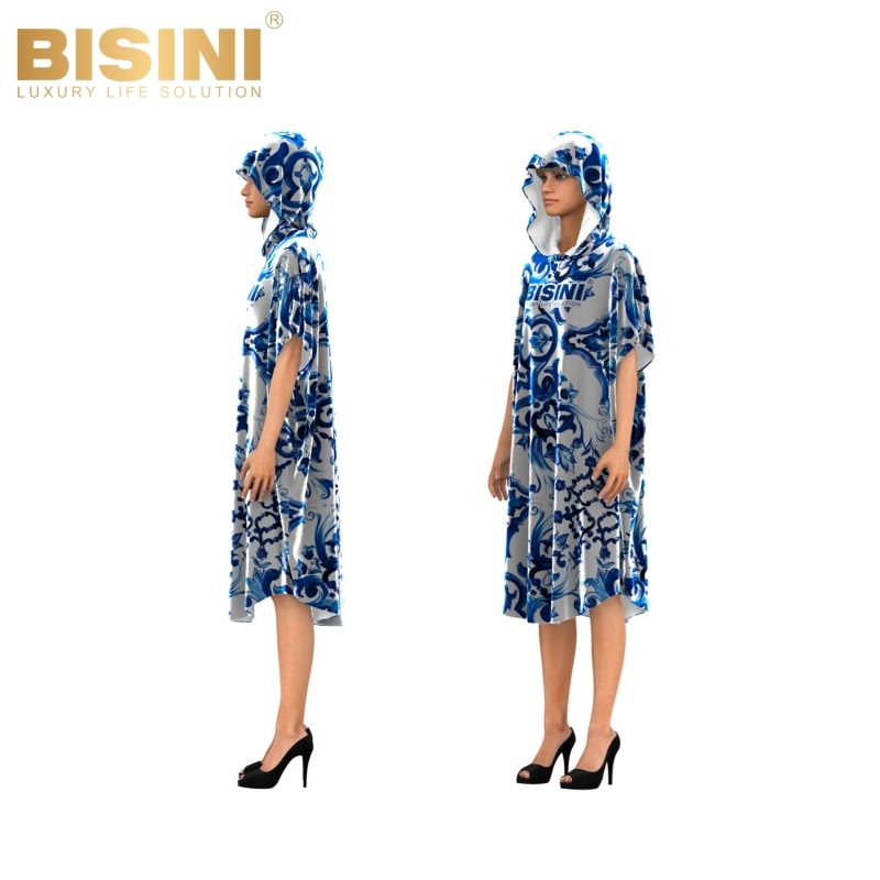 Peignoir de plage à capuche en tissu absorbant 2 en 1 avec motif en porcelaine bleue, logo personnalisé accepté pour les femmes