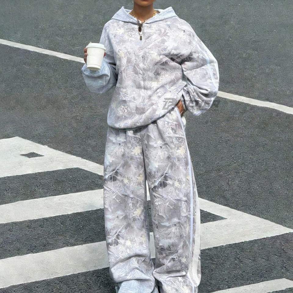 Ensemble de survêtement streetwear pour femme avec logo personnalisé, imprimé délavé à l'acide - 100 % coton, design uni