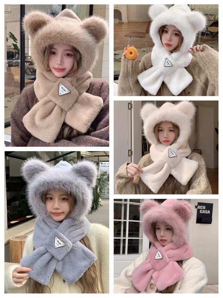 Gants d'hiver en peluche à motif brodé avec logo personnalisé pour femmes avec écharpe à capuche en laine mitaines écharpe en coton imprimé ensembles de gants chapeau