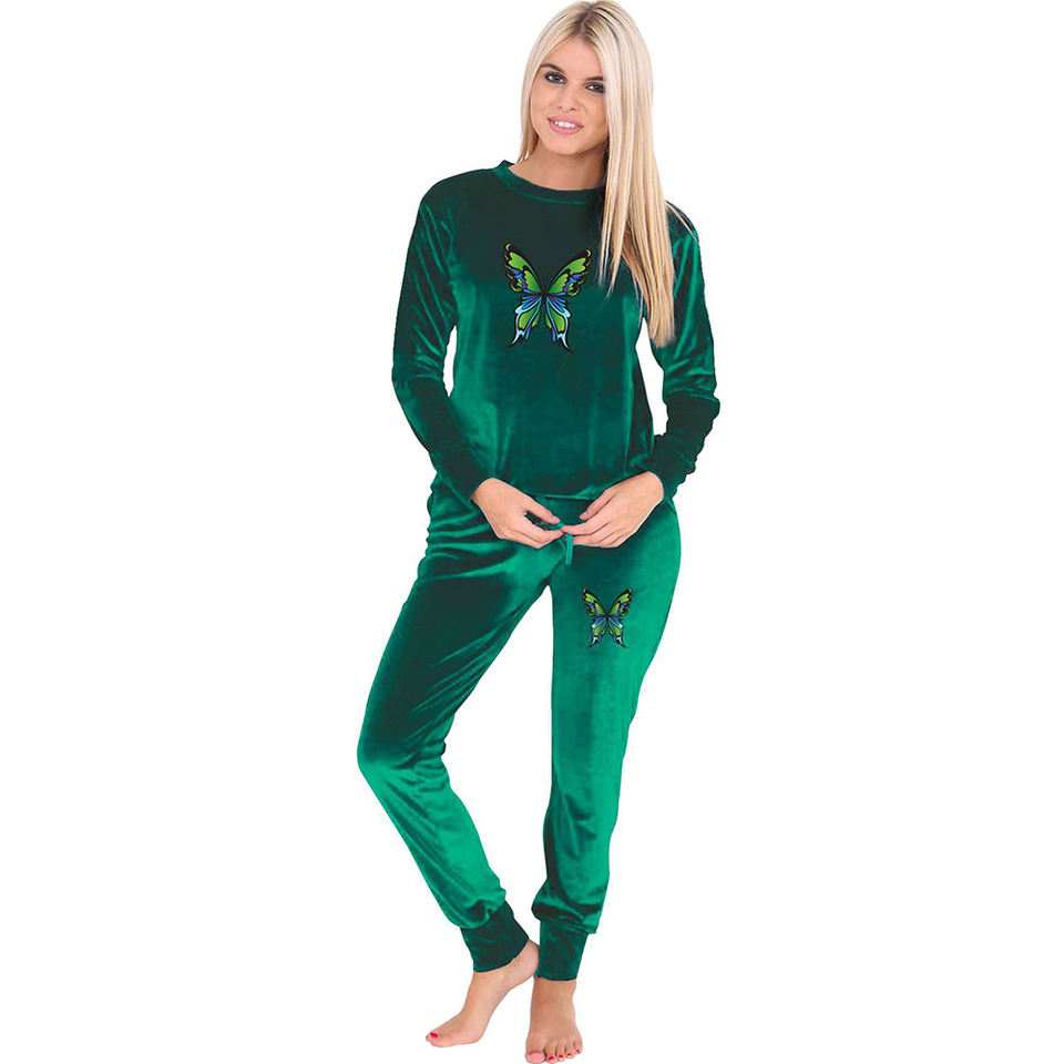 Avion de broderie imprimé personnalisé pour femmes Costumes de yoga en velours vert Vêtements de fitness de qualité supérieure