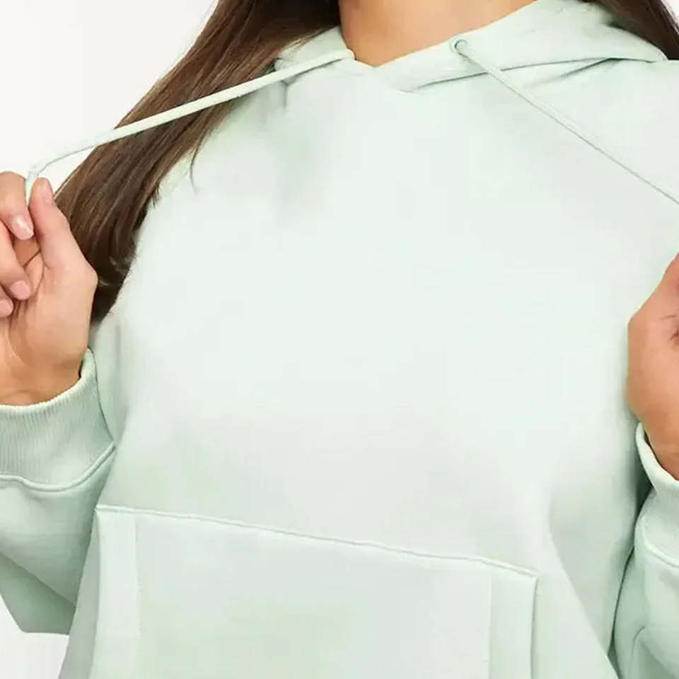 Sweat-shirt décontracté ample à capuche vert menthe imprimé sur mesure pour femme avec poche kangourou et manches longues