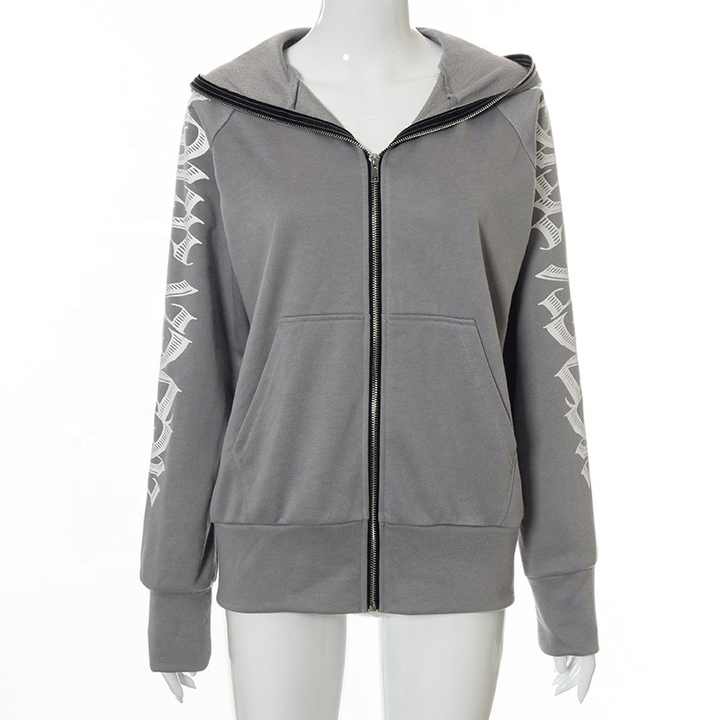 Sweat à capuche zippé imprimé Fce Fl Face pour femmes, vêtements d'hiver décontractés pour femmes avec col à capuche pour filles
