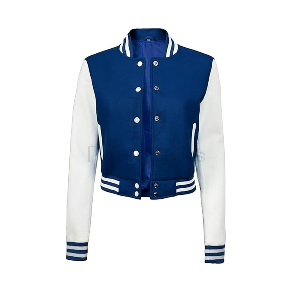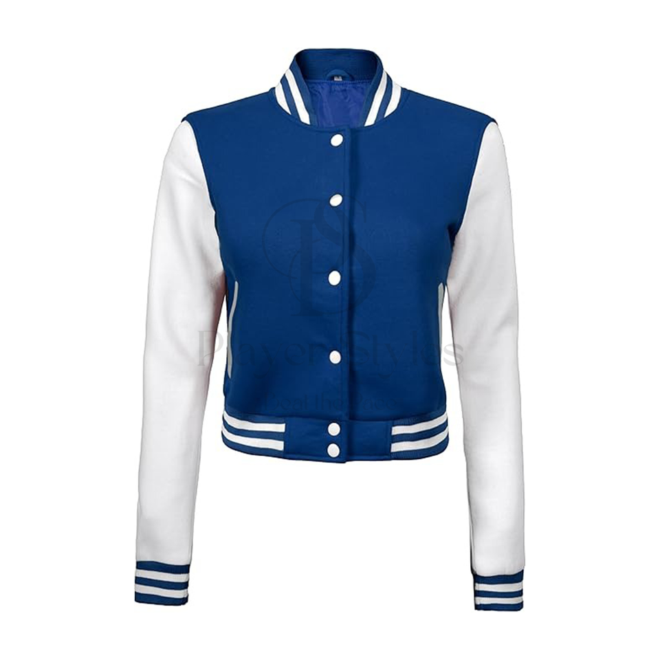 Veste universitaire courte personnalisable pour femme en coton respirant brodé Letterman Design matelassé tissé blanc marine pour l'hiver